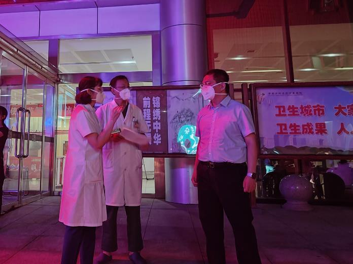 疫情期間,即墨區(qū)中醫(yī)醫(yī)院黨委書記、院長趙成欣實地查看“黃碼醫(yī)院”運行情況。