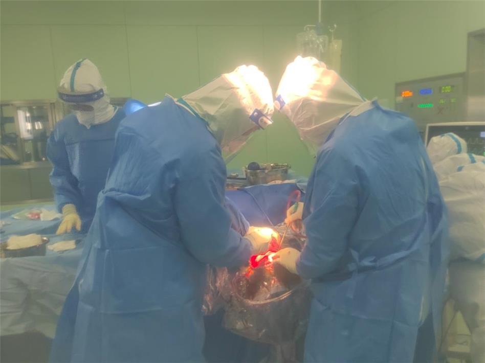 “黃碼醫(yī)院”期間,區(qū)中醫(yī)醫(yī)院醫(yī)護人員為患者進行手術(shù)。
