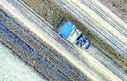 在輕軌錢谷山站附近,聯(lián)合收割機(jī)駕駛員王師傅剛從旁邊的村子轉(zhuǎn)戰(zhàn)到這里,“這幾天附近的麥子基本都可以收割了,所以比較忙,一天能忙八九個小時,午飯基本沒有時間吃!闭f著王師傅跳上車駛?cè)肓他溙锢铩?br />