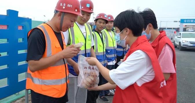活動結(jié)束后,新時代文明實踐志愿者帶著新鮮烤制的月餅,來到周邊的青島百聯(lián)奧特萊斯廣場、三城路改擴(kuò)建工程等建設(shè)工地,為堅守崗位而無法返鄉(xiāng)過節(jié)的建設(shè)者們送去一份“驚喜”。