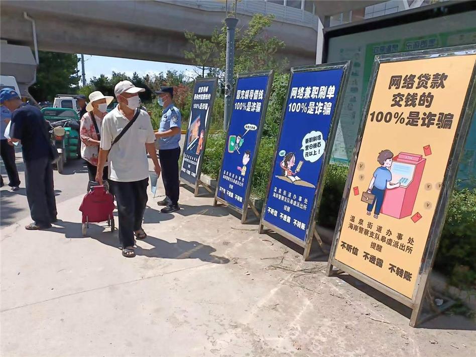 強化宣傳,提高知曉度。辦事處干部職工身體力行下載安裝“國家反詐中心”APP,充分發(fā)揮模范帶頭作用,進一步動員親朋好友安裝使用;街道在轄區(qū)各村(社區(qū))、學校、農(nóng)貿(mào)市場、小區(qū)、沿街商鋪、企業(yè)等重點場所,積極利用宣傳展板、宣傳海報、宣傳車、“村村響”廣播音頻、LED顯示屏、微信公眾號等平臺媒介進行全覆蓋式宣傳,真正做到廣告牌抬頭可見,宣傳聲音隨處可聞,營造“全民反詐”濃厚氛圍。據(jù)統(tǒng)計,截至目前,溫泉街道共開展各類宣傳76次,張貼海報152份,發(fā)放宣傳資料28000余份。