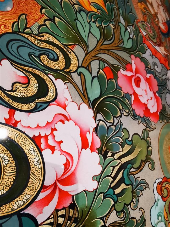 方能完成一部作品,珊瑚朱砂做顏料,藏紅花藍(lán)靛來(lái)渲染成品濃艷絢麗,華貴無(wú)倫