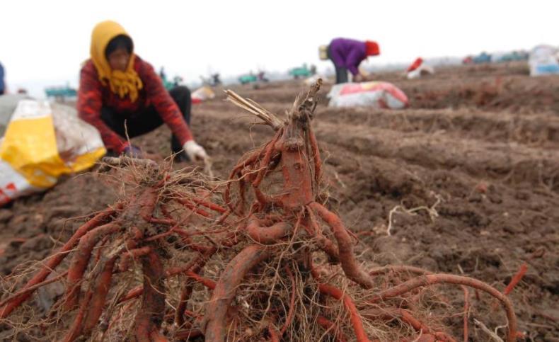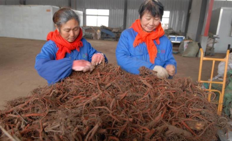 當(dāng)天在采收現(xiàn)場,農(nóng)民三五成群,喜笑顏開,正熟練地采收著丹參。挖的挖、揀的揀、裝的裝,分工明確,井然有序,一袋袋丹參整齊的堆在路旁等待貨車運走!敖衲耆宓⒎N植面積達(dá)到2400畝,丹參長勢好、價格高,不少農(nóng)戶從中受益。”在丹參收獲現(xiàn)場,該村支部書記張春蓮高興地說:“丹參種植,讓村民發(fā)起了‘藥'財!