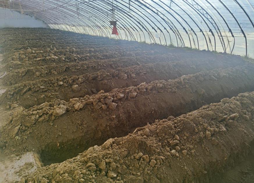 在即墨即發(fā)農(nóng)業(yè)園,技術(shù)人員在棚內(nèi)挖溝、填秸稈、撒菌種,這是在秸稈生物反應(yīng)堆肥料化利用的現(xiàn)場(chǎng),工作人員介紹道:秸稈生物反應(yīng)堆可解決傳統(tǒng)大棚土壤板結(jié)、鹽漬化、土傳病害和線蟲(chóng)嚴(yán)重等連作障礙問(wèn)題。秸稈通過(guò)加入微生物菌劑,在通氣條件下,被分解為二氧化碳、有機(jī)質(zhì)和礦物質(zhì),并產(chǎn)生一定的熱量和大量抗病蟲(chóng)的菌孢子,促進(jìn)農(nóng)作物更好的生長(zhǎng)。