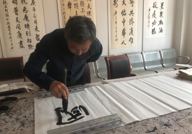 村民王培軍是一位地地道道的農(nóng)民,家里種了10畝地,自小就愛(ài)好書(shū)法,因?yàn)榧依飾l件不好,他就自己練習(xí),后來(lái)在村莊專(zhuān)業(yè)老師的指導(dǎo)下,僅僅用了8年的時(shí)間,他就成了青島市書(shū)法家協(xié)會(huì)會(huì)員。王培軍說(shuō),是書(shū)畫(huà)給了他無(wú)窮的力量和信心,讓他在藝術(shù)的道路上能夠披荊斬棘,勇往直前。