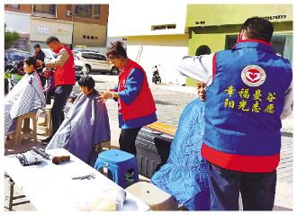 上圖:曼谷陽光社區(qū)進(jìn)行“陽光理發(fā)”志愿服務(wù)。