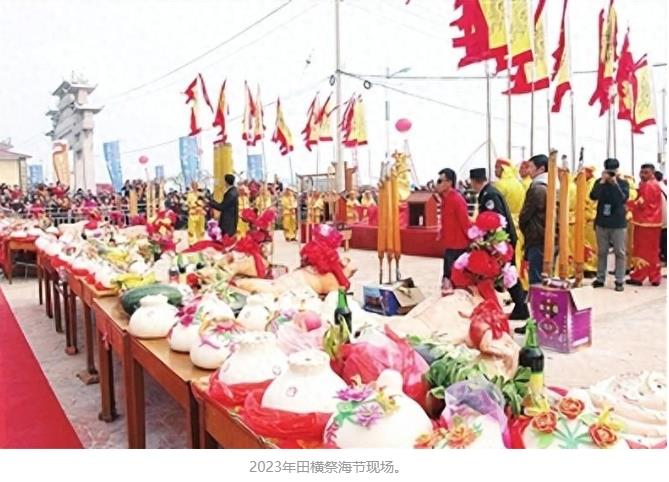 據(jù)介紹,田橫祭海節(jié)是發(fā)源于田橫鎮(zhèn)周戈莊村的地方傳統(tǒng)民俗活動,已有600年歷史。民國初年,田橫祭海節(jié)形成了以家族或船舶為單位的集體祭;顒。從2004年開始,即墨有關部門組織開展了祭海民俗資料挖掘、整理工作,出版了《俗話田橫祭海節(jié)》《田橫祭!返认盗形幕a(chǎn)品,并將“周戈莊上網(wǎng)節(jié)”更名為“周戈莊祭海民俗文化節(jié)”。2005年,改名“田橫祭海民俗文化節(jié)”,時間定為每年3月18日前后三天。2006年,祭海活動正式定名為“田橫祭海節(jié)”。2008年,田橫祭海節(jié)被列入第二批國家級非物質(zhì)文化遺產(chǎn)名錄,并榮膺首屆節(jié)慶中華獎“最佳公眾參與獎”。2009年起,即墨決定主辦田橫祭海節(jié)。