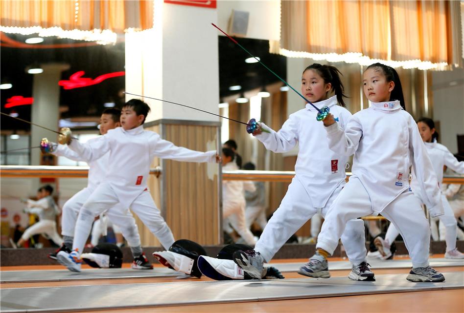 4月19日,青島通濟(jì)實(shí)驗(yàn)學(xué)校學(xué)生在大課間活動(dòng)中練習(xí)擊劍。