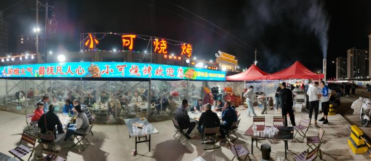 千米長的燒烤街,家家座無虛席,門前還有不少顧客正排隊等座!昂芟矚g來這里,坐著馬扎,吃著烤肉非常接地氣!币晃活櫩驼f,氤氳的煙火氣讓他在大快朵頤同時,感受到濃濃的氛圍感。
