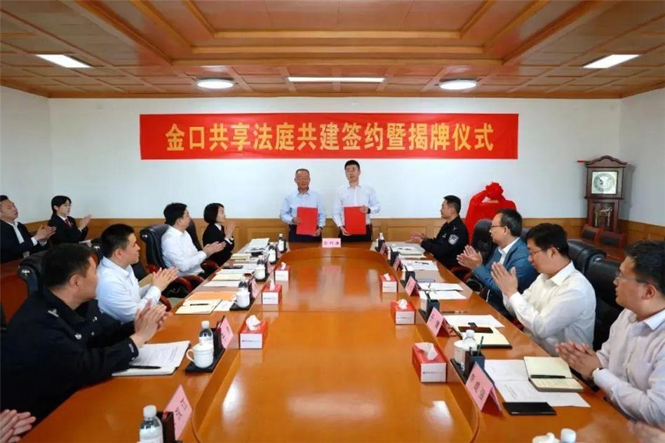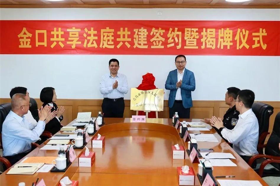 儀式上,即墨法院與金口鎮(zhèn)簽訂了共享法庭共建協(xié)議,陳剛、李釗共同為即墨法院金口共享法庭揭牌。在隨后召開(kāi)的座談會(huì)上,鰲山法庭、店集派出所、金口派出所、金口司法所、神山埠村調(diào)解小組等依次發(fā)言,各方就共同推進(jìn)共享法庭建設(shè)進(jìn)行深入交流。