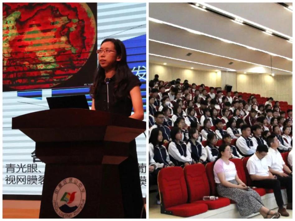 隨后,同心九三行科普教育專家、九三學(xué)社青島市立醫(yī)院委員會社員、青島市立醫(yī)院眼科主治醫(yī)師劉筱楠主任,為同學(xué)們講授題為《清晰“視界”光明未來》的精彩科普講座,贏得了師生們的熱烈掌聲和好評。