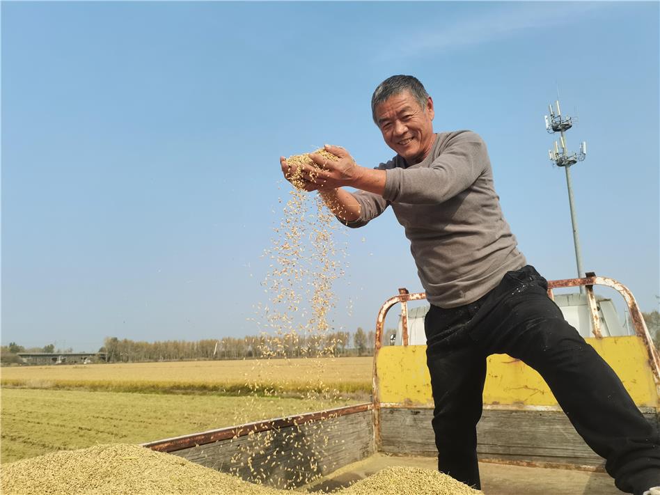 “今天收割的水稻最高畝產(chǎn)達(dá)到了1200斤,質(zhì)地和口感都很好!睋(jù)當(dāng)?shù)氐巨r(nóng)介紹,目前除了合作社種植的1000多畝水稻外,周邊村莊的村民也開始種植水稻。合作社免費(fèi)提供技術(shù)支持,為村民們提供育苗、插秧、收割和平時(shí)管理維護(hù)的“一條龍服務(wù)”,成功恢復(fù)了藍(lán)村鹽堿地水稻的種植。