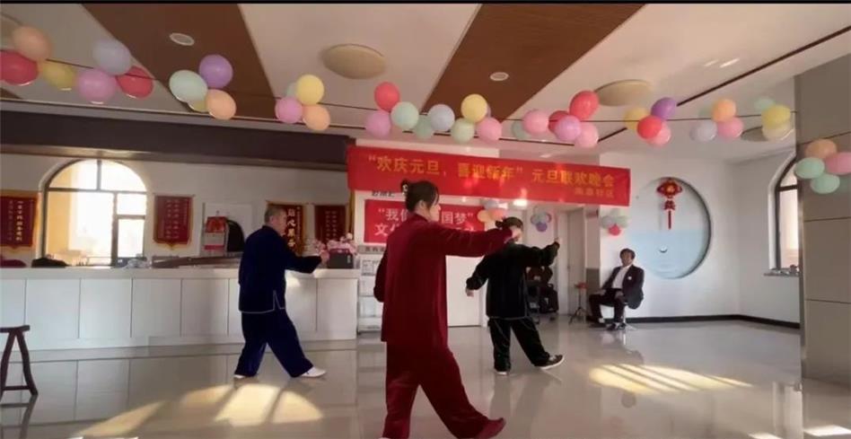 為迎接元旦佳節(jié),弘揚(yáng)中華傳統(tǒng)文化,營(yíng)造文明、和諧、健康的社區(qū)文化氛圍,12月27日,海泉社區(qū)舉辦“歡慶元旦 喜迎新年”元旦聯(lián)歡會(huì);顒(dòng)開(kāi)始,以中國(guó)傳統(tǒng)運(yùn)動(dòng)《42式太極拳》正式拉開(kāi)帷幕。