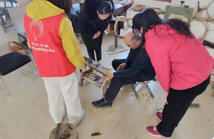 隨后,在志愿者的指導(dǎo)下,村民們和孩子們開始了鳥籠的制作體驗。為更貼合大家的實際情況,孩子們跟隨志愿者在兒童體驗區(qū)體驗簡單的鳥籠編制工藝,家長們則在非遺傳承人的帶領(lǐng)下感悟鳥籠雕刻的魅力。折圈、刻花、鉆孔、組裝,大家學(xué)得認(rèn)真,做得仔細(xì),尤其是孩子們,小心翼翼地操作著手中的工具,生怕錯過任何一個細(xì)節(jié)。在志愿者和匠人的指導(dǎo)下,大家逐漸掌握了鳥籠組裝的要領(lǐng),同時也領(lǐng)略到了中國傳統(tǒng)雕刻藝術(shù)的魅力。